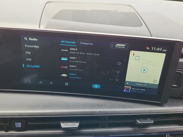 - Radio: AM/FM/HD Bose Premium Audio System -inc: 12 speakers including subwoofer external amplifier 12.3 wide touchscreen Apple CarPlay and Android Auto Bluetooth hands-free w/wireless audio streaming dynamic voice recognition USB connectivity SiriusXM wifi hotspot Blue Link connected car system navigation system including traffic flow w/incident data via HD Radio (HERE) OTA updates (map only) and rear seat quiet mode