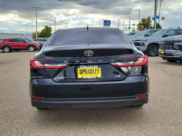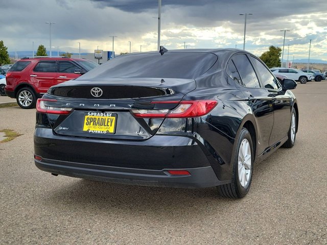 CARFAX One-Owner. Midnight Black Metallic 2025 Toyota Camry LE FWD eCVT 2.5L 4-Cylinder 16V DOHC 2.5L 4-Cylinder 16V DOHC, Boulder w/Fabric Seat Trim.Odometer is 2580 miles below market average! 53/50 City/Highway MPGCome in and see why people buy from Spradley Chevrolet Hyundai and then send their friends and family. We pride ourselves on being the best in customer service and giving you the best deal possible. And if you have good credit, bad credit, bankruptcy, or are a first time buyer, we can help! Call Spradley Chevrolet Hyundais Internet Department today at 719-544-8162 and schedule your time to come in and test drive any of our new Chevrolet Silverado 1500, Impala and Suburbans or Hyundai Santa Fe, Tucson and Accents. And dont forget, we have all makes and models of pre-owned to choose from. Located at 2146 HWY 50 West, Pueblo, Colorado, where you will always hear, Oh Yes You Can! Spradley Chevrolet Hyundai, your dealership for all of Southwest, Southeast and Southern, Colorado!